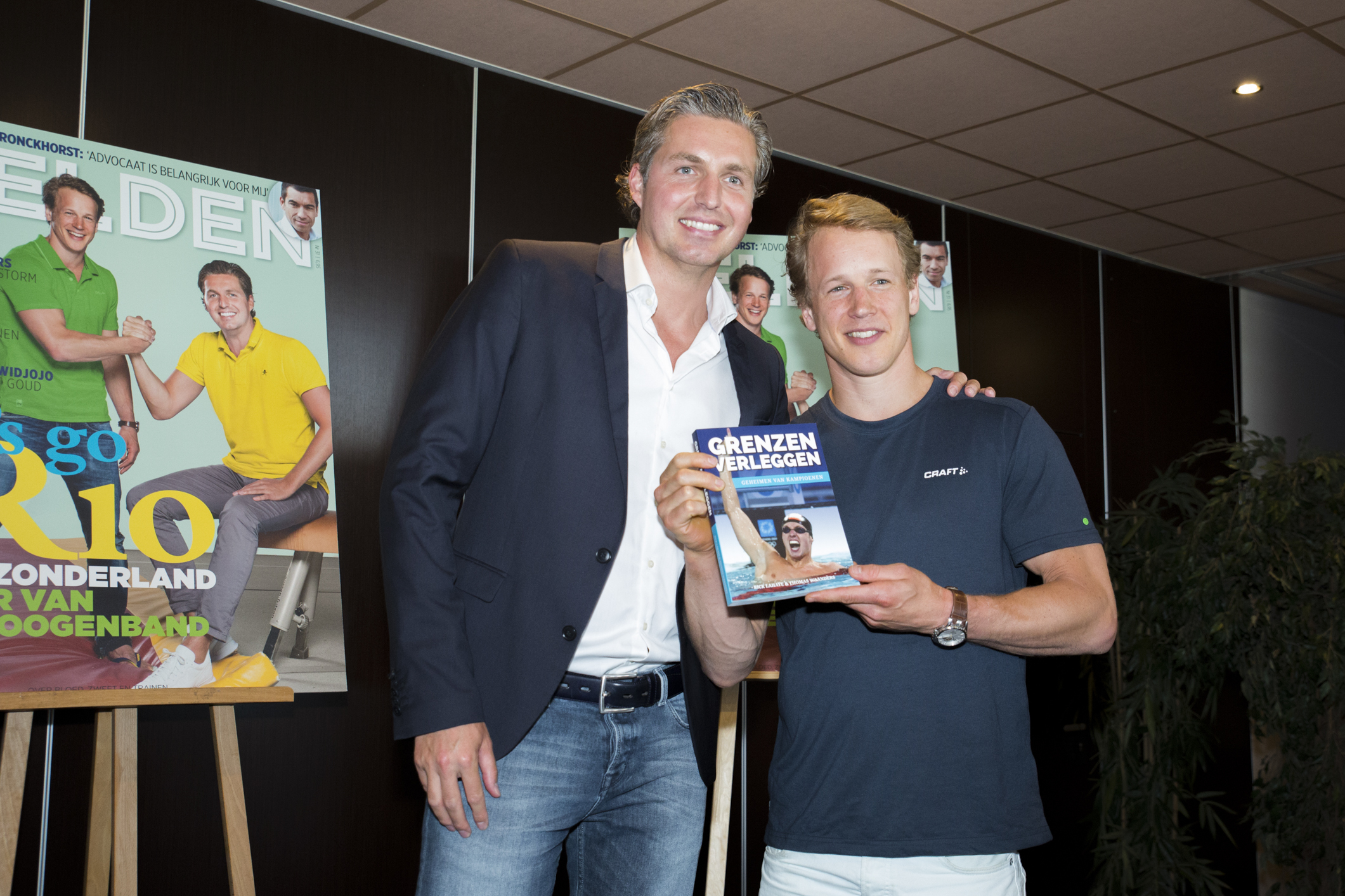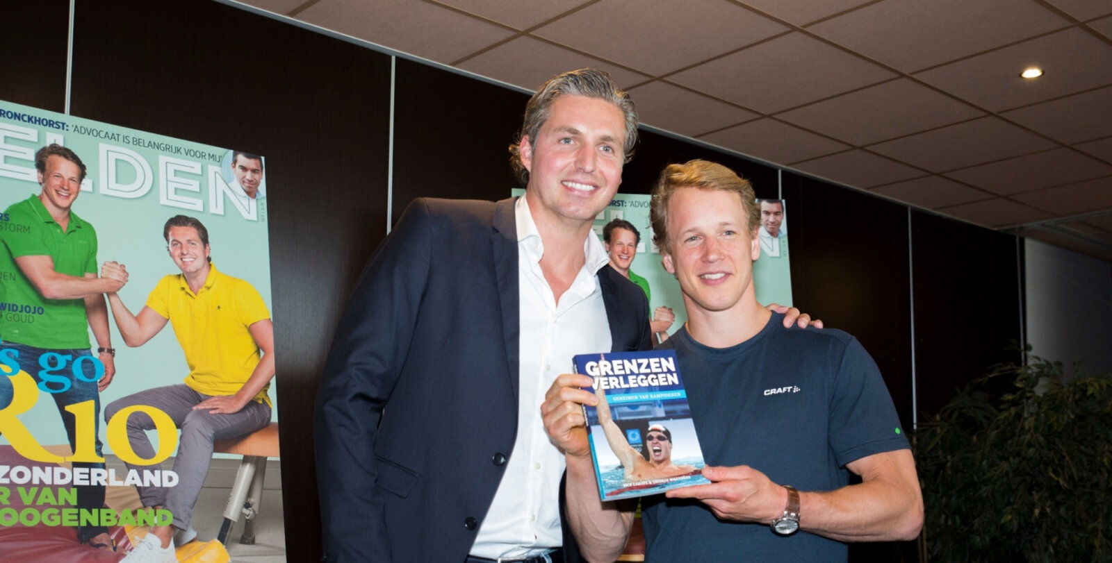 Epke Zonderland kreeg, als vertegenwoordiger van TeamNL, het eerste exemplaar uitgereikt op weg naar de Olympische Spelen van Rio. “Ik hoop van harte dat Epke en alle andere Nederlandse olympische sporters mede dankzij ‘Grenzen Verleggen’ in Rio beter dan ooit gaan presteren. Zoals wij vroeger ook door onze voorbeelden zijn geïnspireerd en uitgedaagd om ‘hun’ grenzen te doorbreken.” aldus Van den Hoogenband, die samen met Zonderland tevens de cover van de eveneens dinsdag gelanceerde olympische uitgave van Helden Magazine siert.